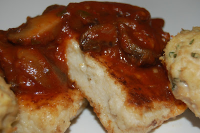 Not wanting to make just the meatballs by themselves I ask the advice of my Nesties. Elly had commented on making a chunky tomato sauce to go with them, and I remembered a fabulous recipe she had on her blog. It was the mushroom ragu and pan fried polenta. I had found my pairing for the meatballs. : ) I did make a few slight modifications to the CL recipe, as well as Elly's due to what I had on hand.